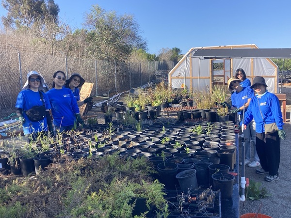 Volunteers from IKPAVC, NCL Vista Irvine, Woodbridge High and Irvine High’s SOL Club joined us at last Saturday’s nursery event. Volunteers assisted with upsizing over 130 Aeonium succulents into one-gallon containers, staining some of our tables and benches, repairing shed door hinges, and general upkeep around the nursery, such as raking leaves, hand-weeding plants, and trimming back vegetation. A big thank you to all the volunteers for their hard work!