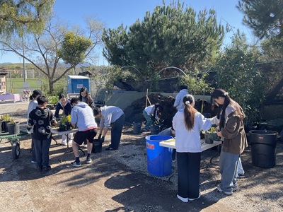Volunteers from IKPAVC, UCI Pre-Dental Society, Portola High School, Pegasus Middle school, and others joined us for Saturday’s nursery event. also Tasks included propagating Tuscan Blue Rosemary cuttings to one-gallon containers and placing them in the green house, upsizing one-gallon Kangaroo Paw plants to five-gallon containers, hand weeding at the tree rows, clearing one-gallon containers with no plants from the tables, raising fallen trees in tree rows, cutting back vegetation along the chain link perimeter fence, removing dead trees in tree rows, and picking up vegetation.