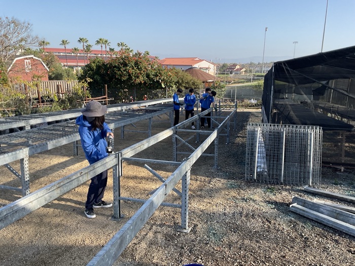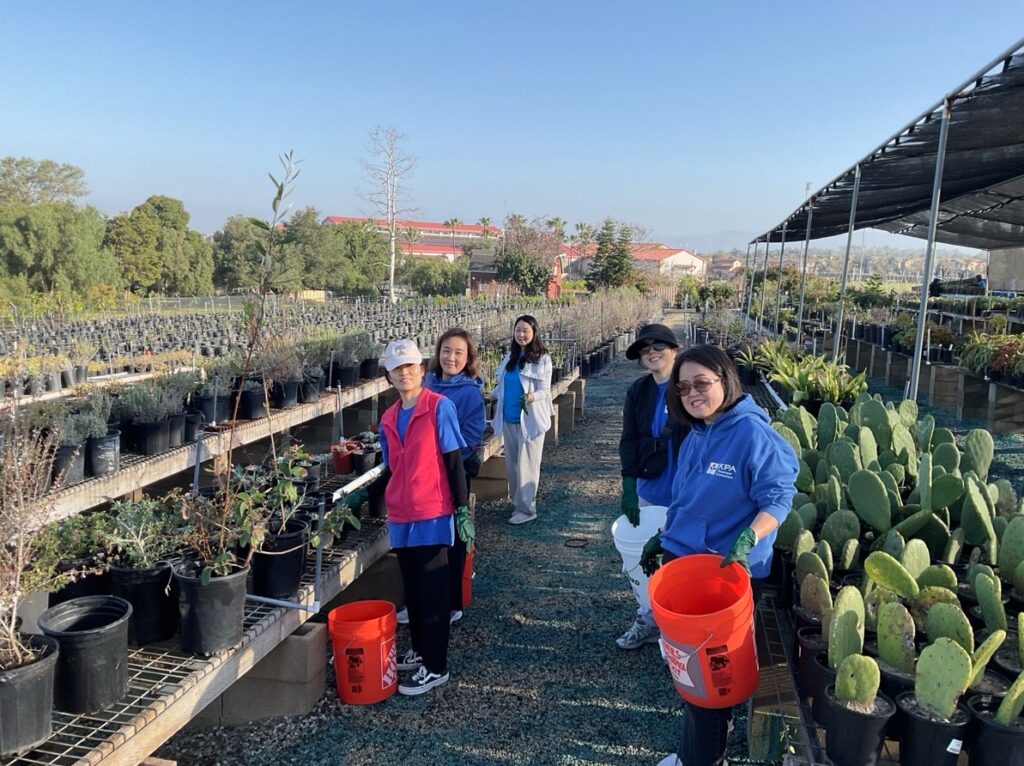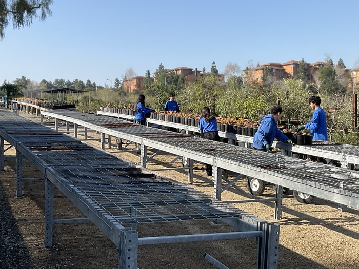 Volunteers from IKPAVC, UCI American Red Cross, Irvine High School’s Sol Club, and Kramer Middle School joined us for Saturday’s nursery event. Task included continuing the assembly of new rack tables, propagating Paddle Plant succulents, relocating 400 one-gallon plants from the greenhouse to new tables, hand weeding, and organizing.