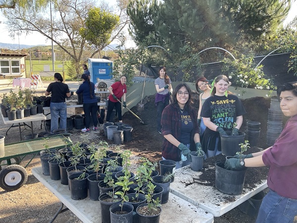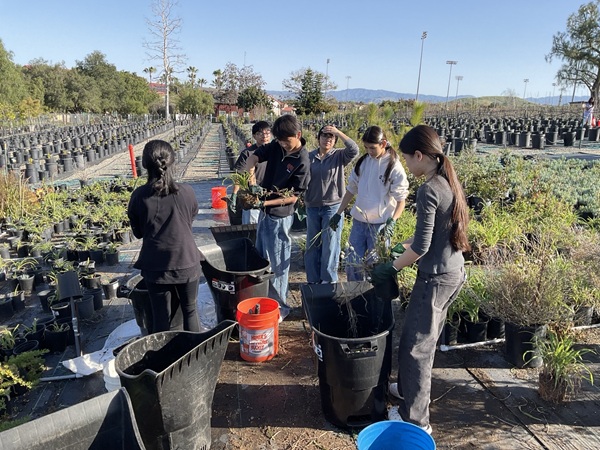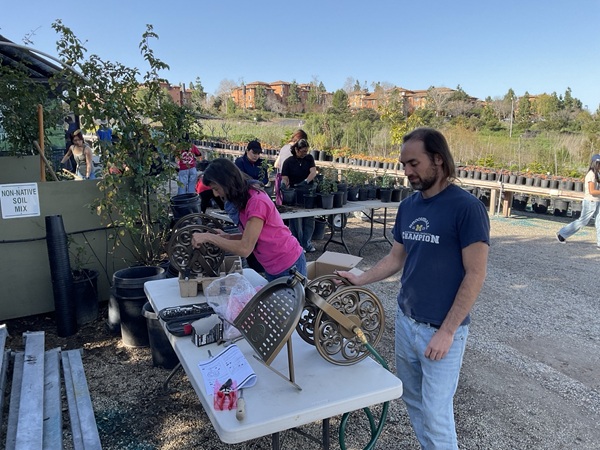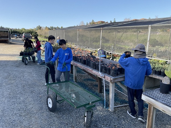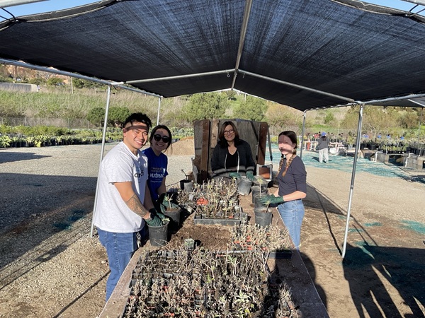 We had a great turnout at Saturday’s nursery event, with over 65 volunteers joining us from IKPAVC, UCI American Red Cross, NCL Monarch Chapter, NCL Vista Irvine Chapter, Stanbridge University, Woodbridge High School, Pegasus Middle School, Segerstrom High School, and others! Volunteers helped with hand weeding, propagating Butterfly bushes, upsizing trees to 5-gallon containers, assembling new hose reels, propagating 100 Coast live oak acorn trees, and relocating 300 newly propagated plants onto the tables.