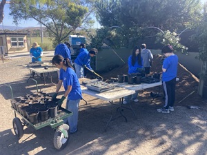 Volunteers from IKPAVC and Woodbridge High School attended Saturday’s nursery event. Volunteers helped with upsizing grasses from two-inch containers to one-gallon containers and moved them over to the growing area, as well as helped to install a new kick plate onto the door of one of the sheds.