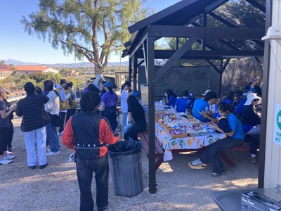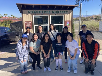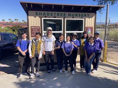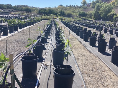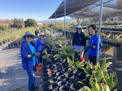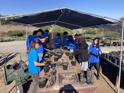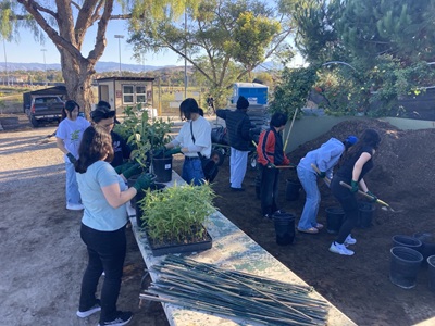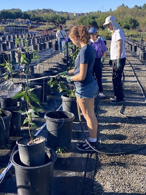Volunteers from the Irvine Korean Parents Association Volunteer Committee, UCI American Red Cross, UCI Anteaters Tzu Ching Collegiate Association, and Woodbridge High joined us for the October 18th nursery event. Volunteers upsized grasses from two-inch liners to one-gallon containers and placed them in the tree rows, hand weeded at the tables, and assisted in watering the new trees.